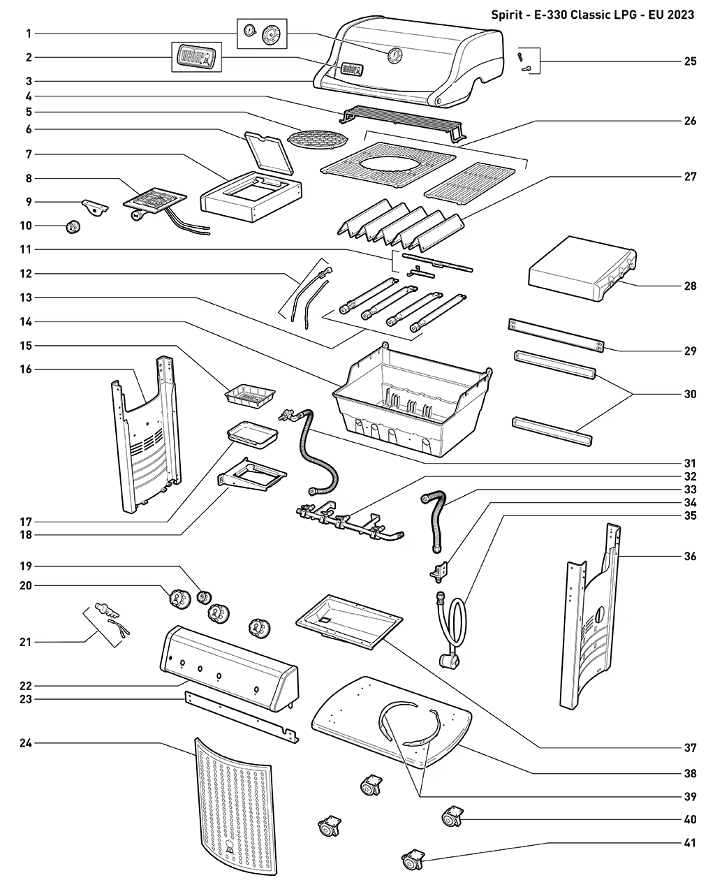 Voor de Weber Spirit Classic E-330 vind je bij BBQ Parts Europe een compleet aanbod originele onderdelen en vervangingsdelen. Denk aan branders, gietijzeren grillroosters, flavorizer bars, ontstekingsmodules en vetopvangsystemen. Zo houd je jouw Spirit E-330 gasbarbecue betrouwbaar, veilig en in optimale conditie voor jarenlang grillplezier.